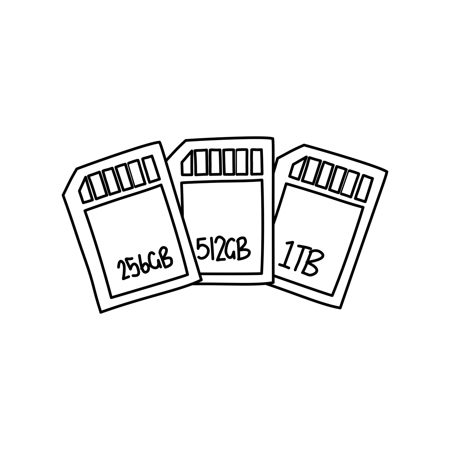 Select a high-capacity SD card for your regions, available in 256GB, 512GB or 1TB. This leaves the tablet's 256GB of internal storage free for personal use.