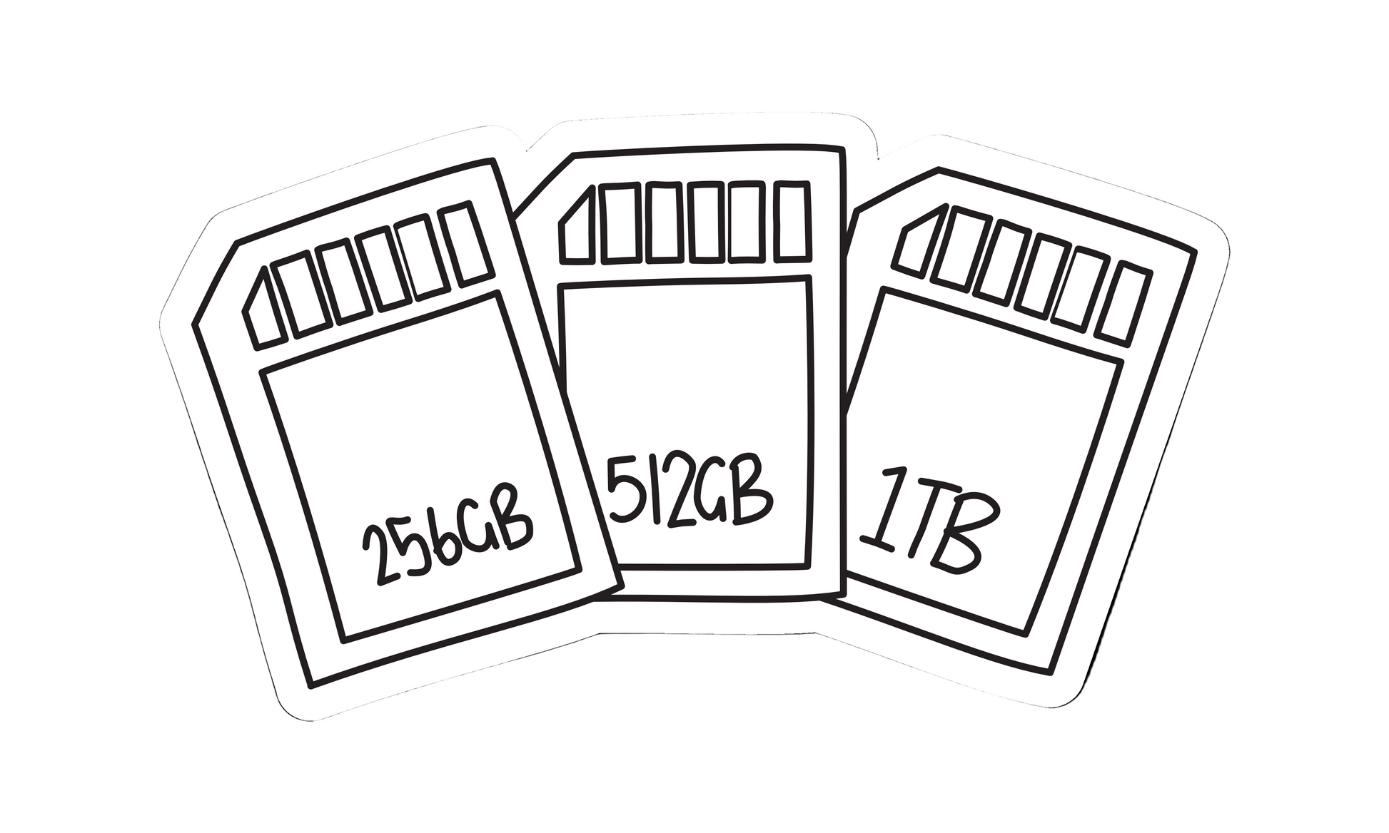 - 256GB, 512GB or 1TB with space usage shown during selection
